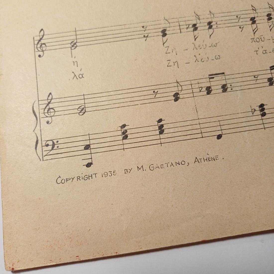 Vintage Παρτιτούρα “Ζηλεύω” Τάκης Μαρίνος (1935)