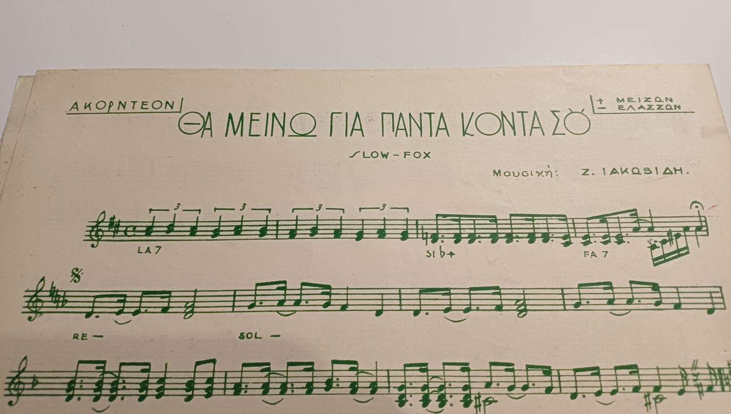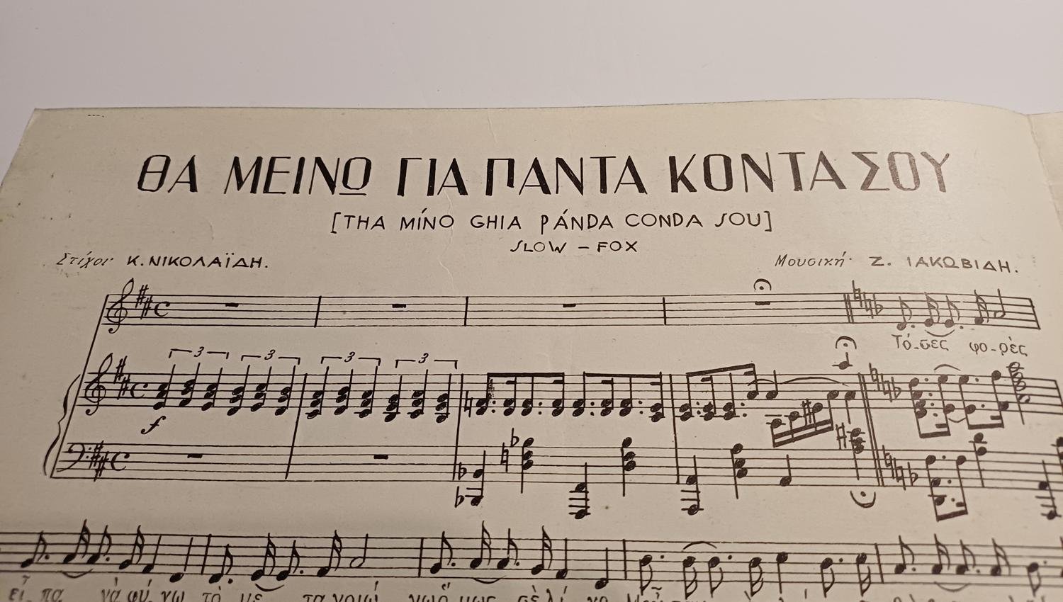 Vintage παρτιτούρα “Θα μείνω για πάντα κοντά σου” Ζ. Ιακωβίδης (1947).