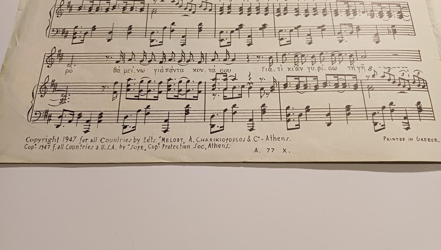 Vintage Παρτιτούρα “Θα μείνω για πάντα κοντά σου” Ζ. Ιακωβίδης (1947)