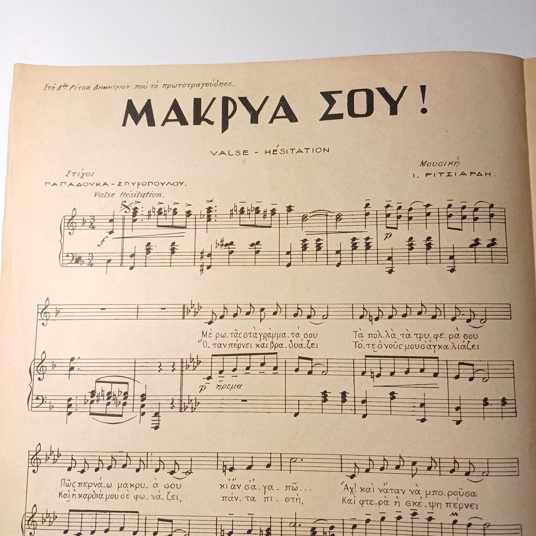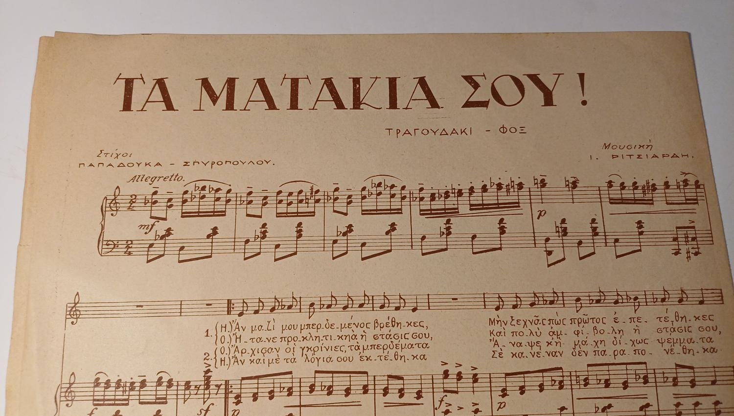 Vintage παρτιτούρα “Μακρυά Σου” & “Τα ματάκια σου” Ι. Ριτσιάρδης (1941).