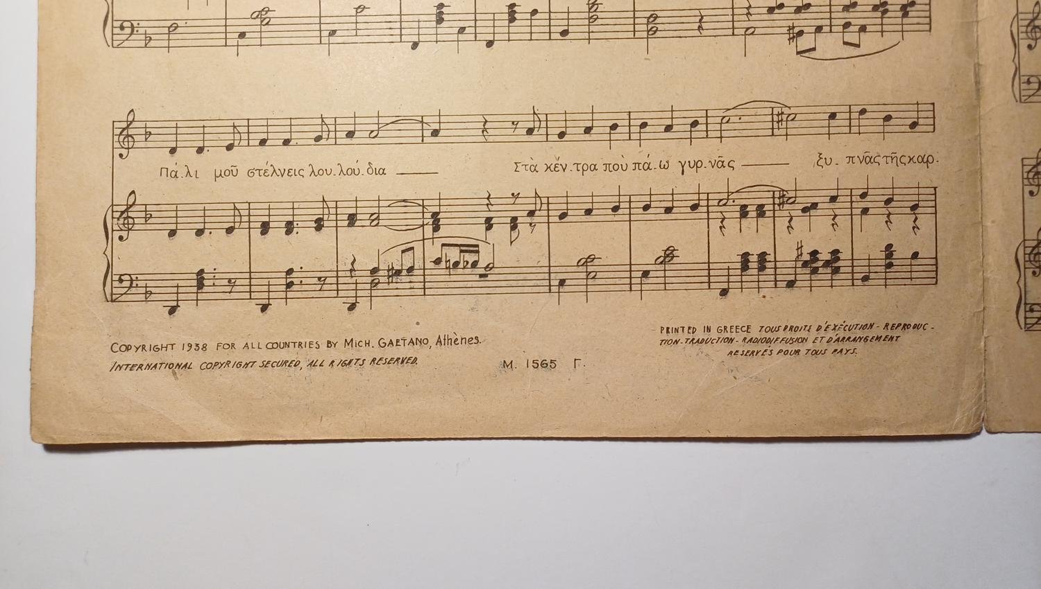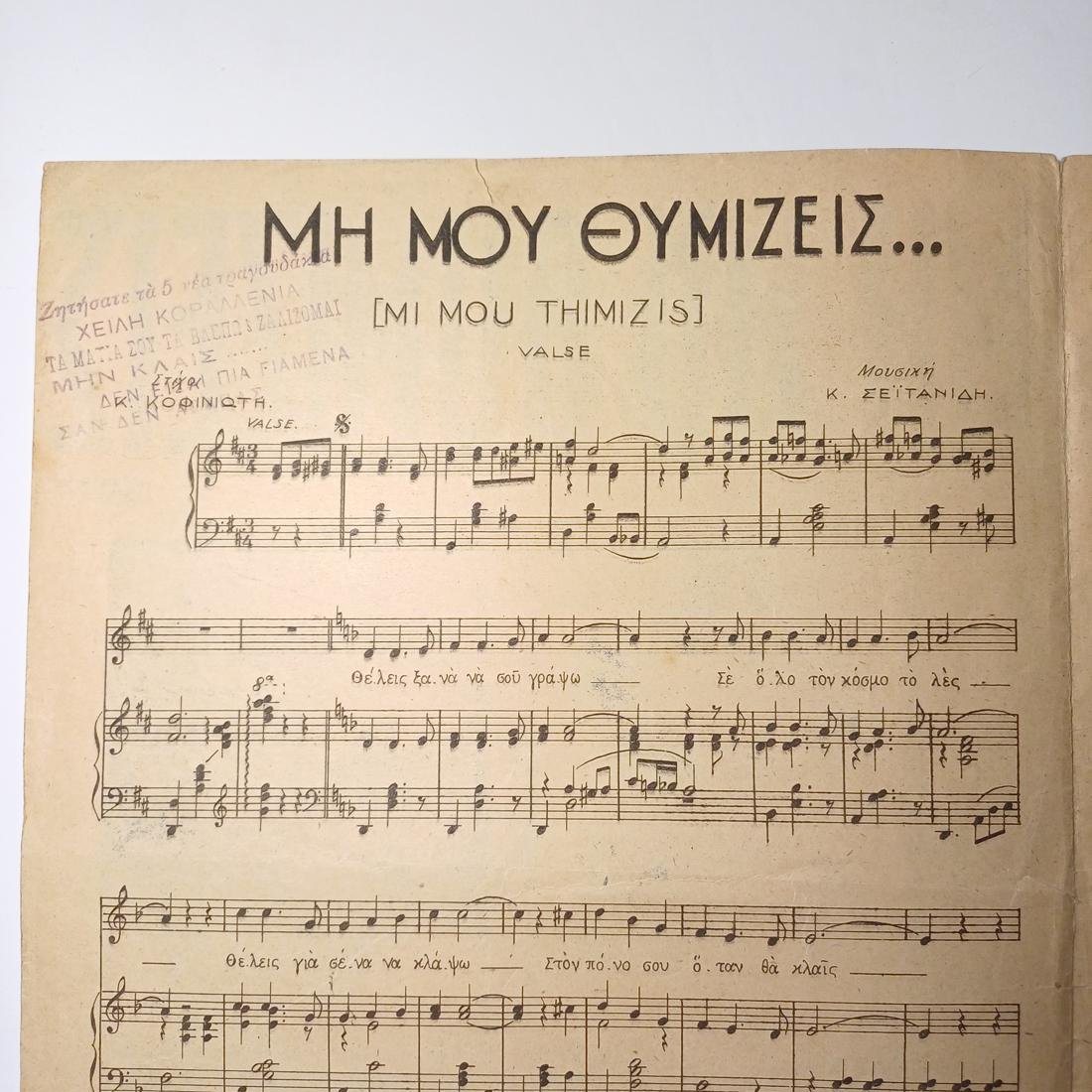 Vintage παρτιτούρα “Μη μου θυμίζεις” Κ. Σεϊτανίδης (1938).