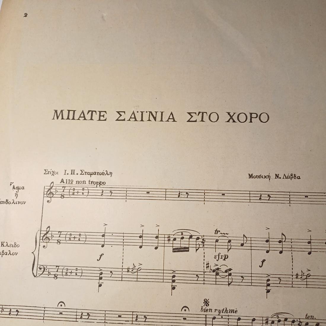 Vintage παρτιτούρα “Μπάτε σαΐνια στο χορό” Νικόλαος Λάβδας (1910).