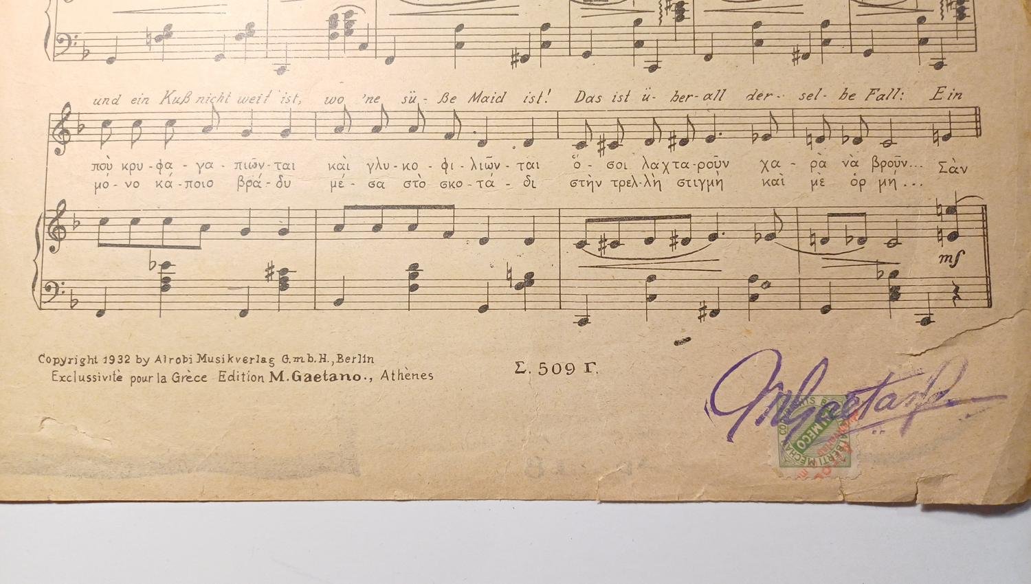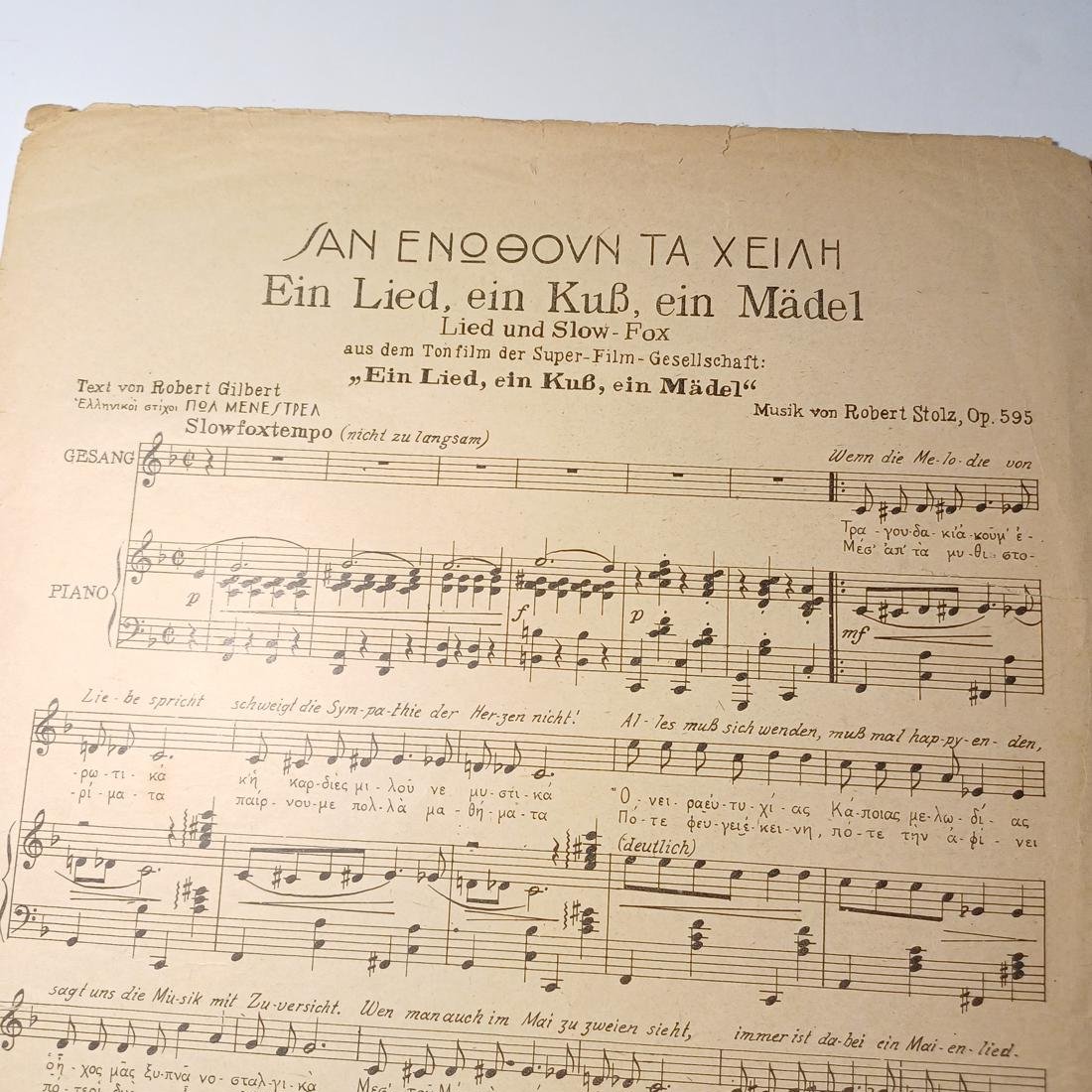 Vintage παρτιτούρα “Σαν ενωθούν τα χείλη-Ein Lied, ein Kuß, ein Mädel” Robert Gilbert (1932).