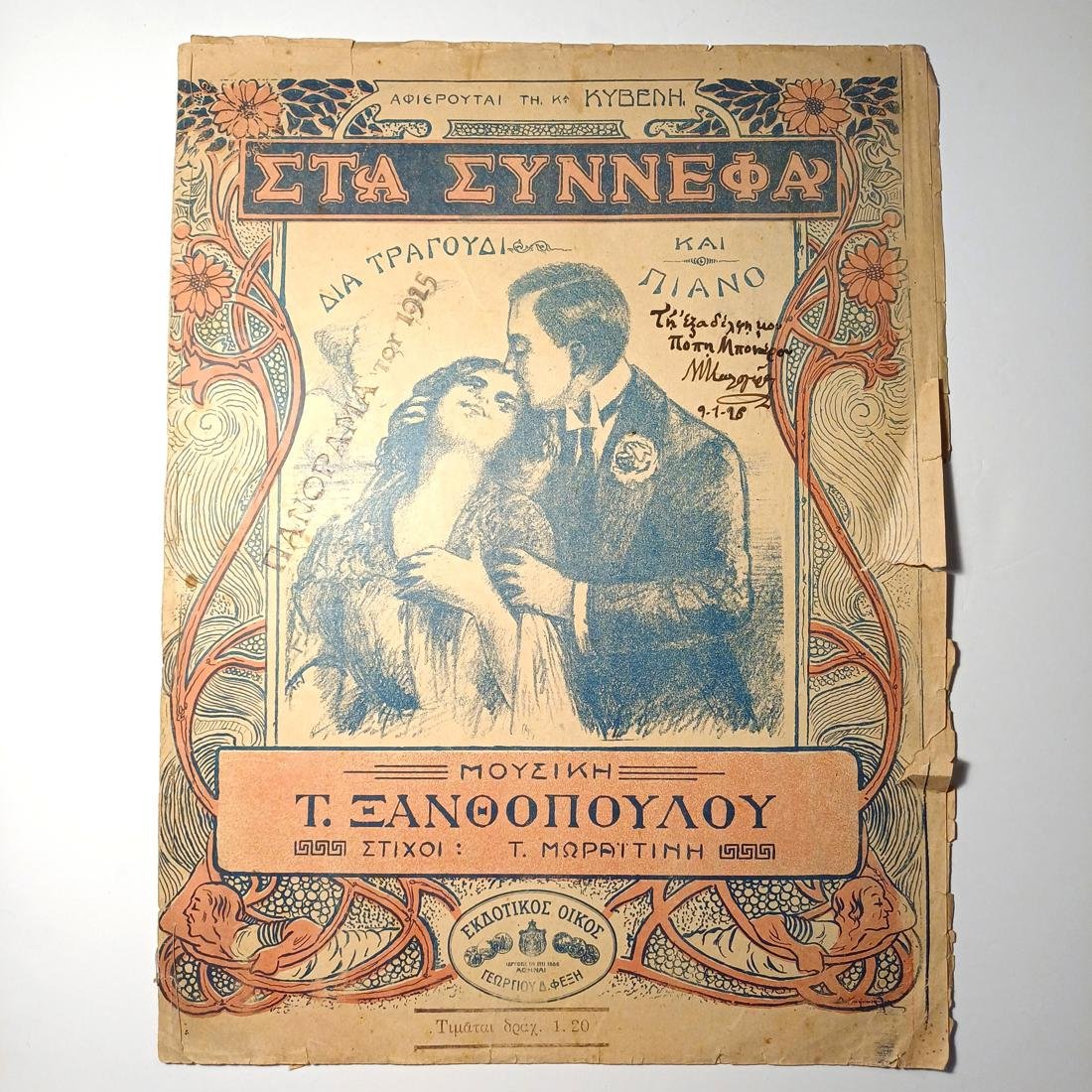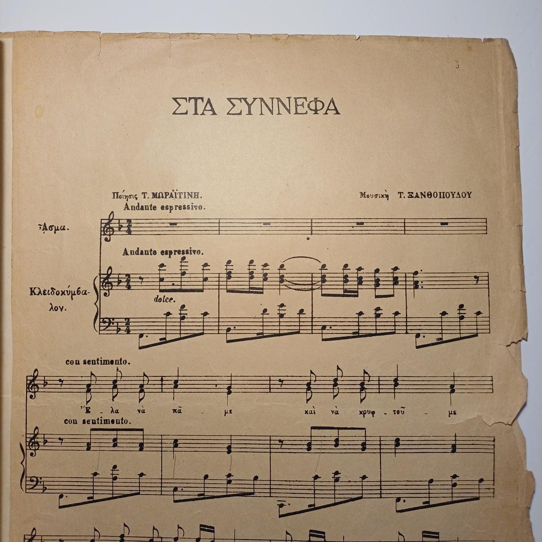 Vintage παρτιτούρα “Στα Σύννεφα” Τ. Ξανθόπουλο (1915).