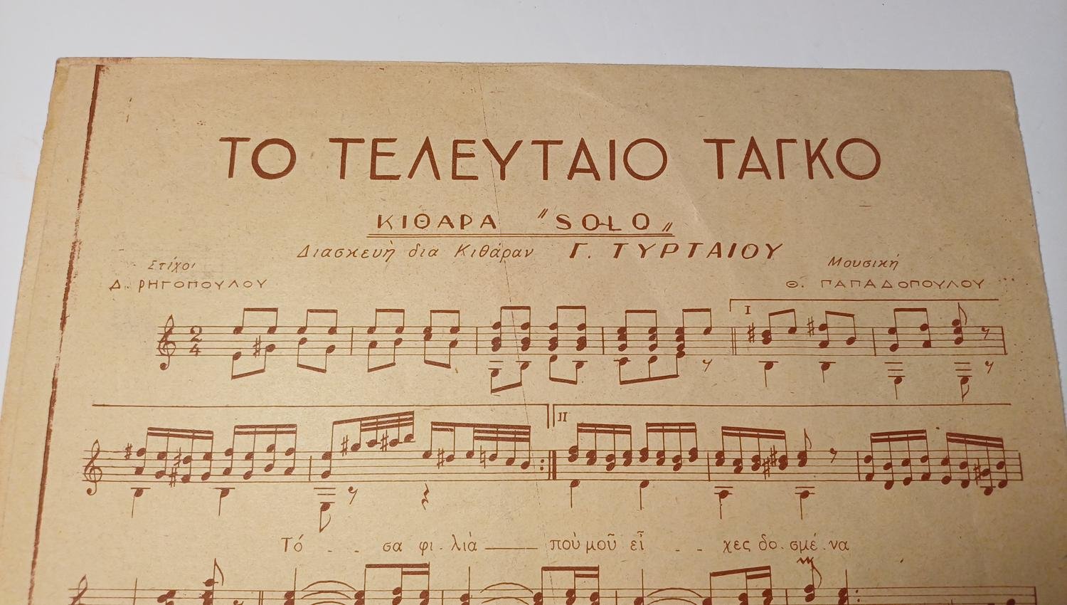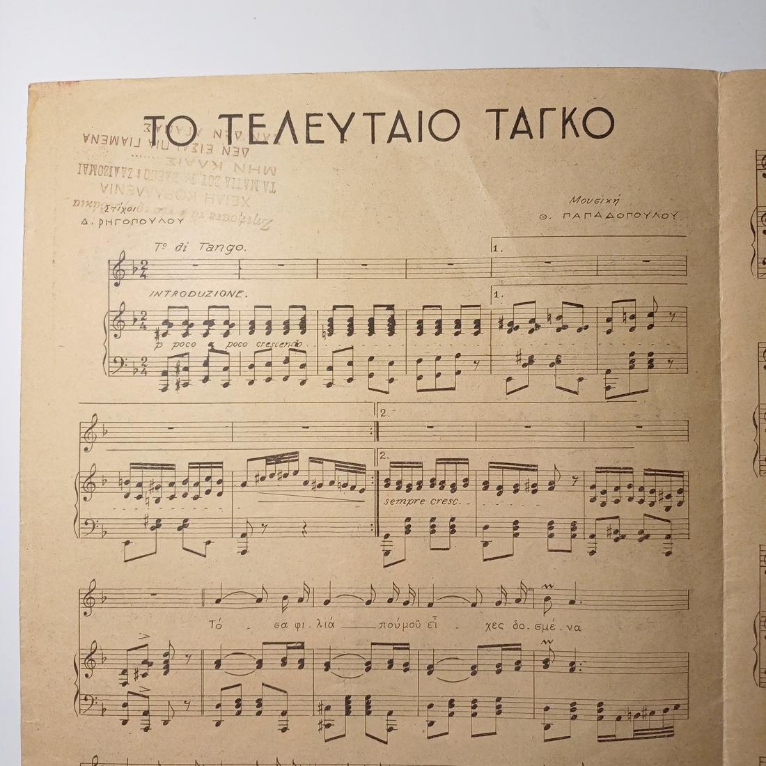 Vintage παρτιτούρα “Το Τελευταίο Ταγκό” Θ. Παπαδοπούλου (1938).