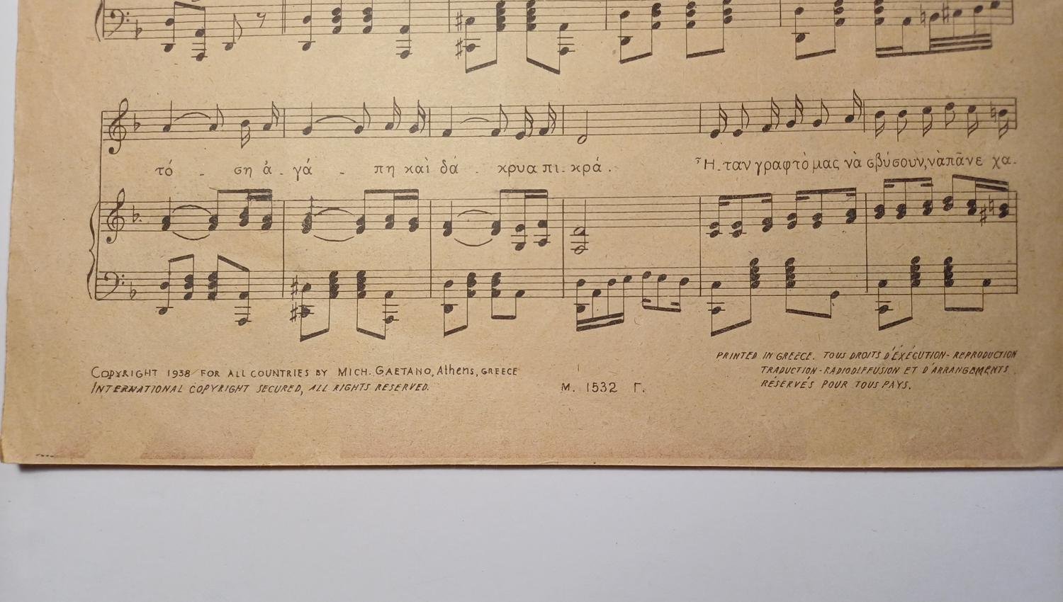 Vintage Παρτιτούρα “Το Τελευταίο Ταγκό” Θ. Παπαδοπούλου (1938)