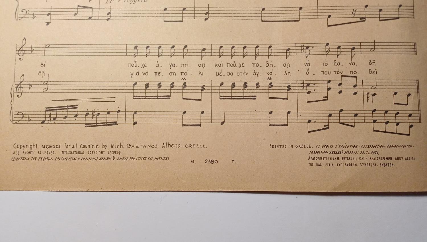 Vintage παρτιτούρα “Το Τσιγγάνικο Τάγκο” Θ. Σακελλαρίδης (1930).