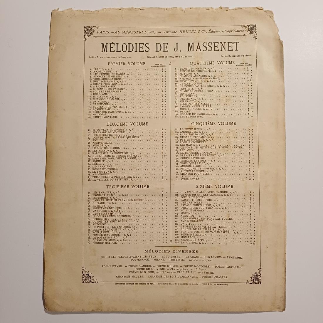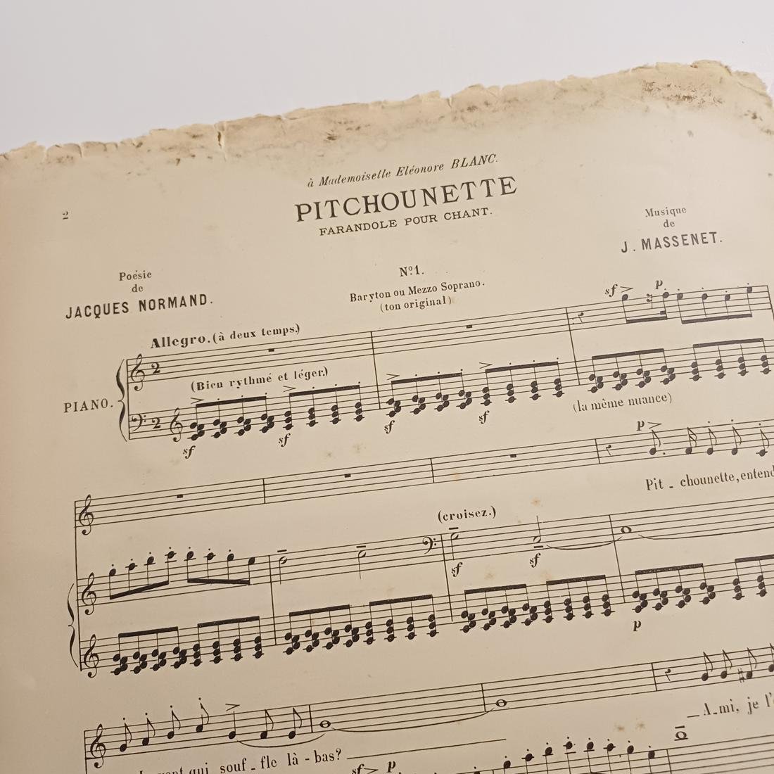 Σπάνια vintage παρτιτούρα με τίτλο “Pitchounette” του διάσημου Γάλλου συνθέτη J. Massenet