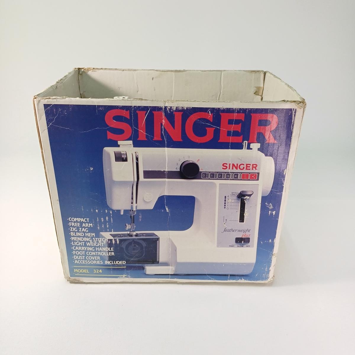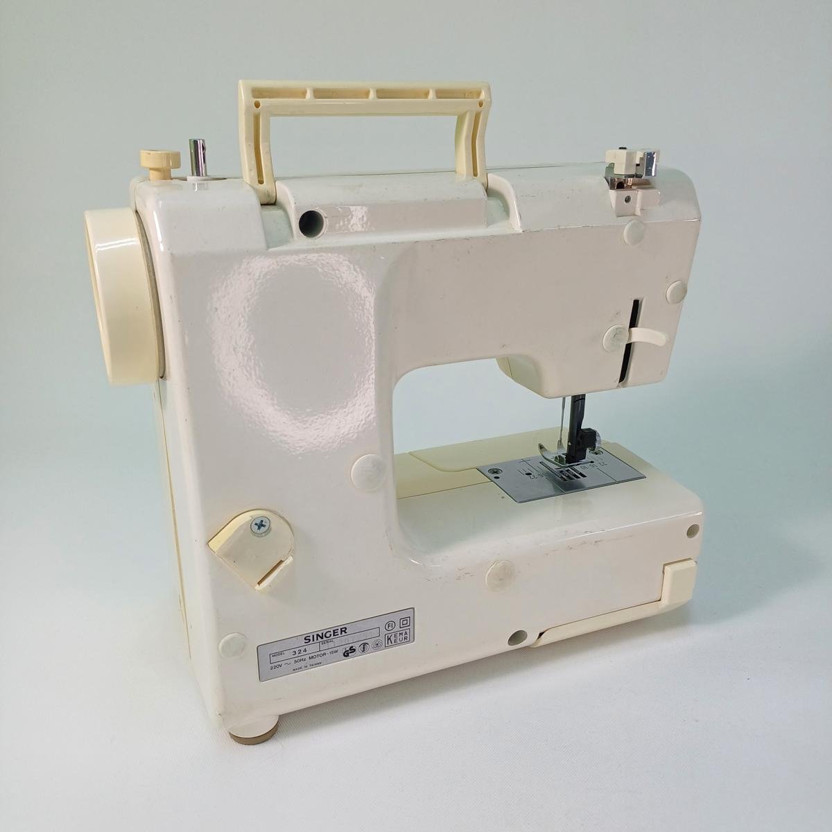 Vintage ραπτομηχανή SINGER μοντέλου 324 και με σειριακό αριθμό 11207251. Είναι μεταχειρισμένη και συνοδεύεται από το κουτί της (το οποίο έχει κάποιες φθορές), το εγχειρίδιο οδηγιών και κάποια εξαρτήματα όπως φαίνονται στις φωτογραφίες.