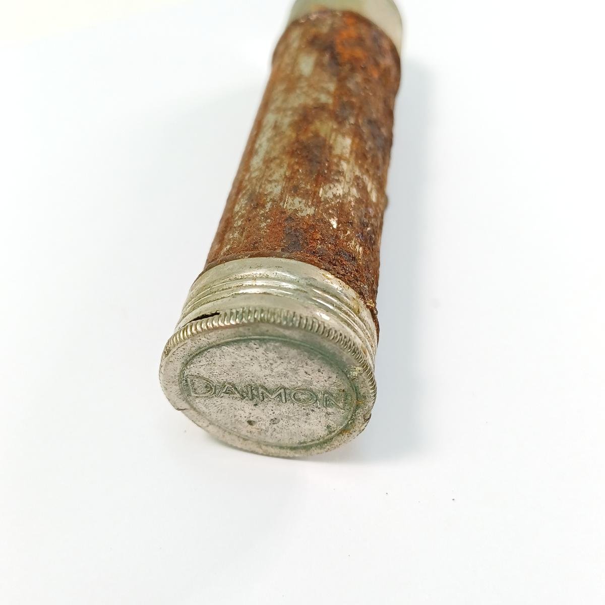 Vintage φακός DAIMON από μέταλλο ο οποίος χρονολογείται στη δεκαετία 1940. Το μήκος του είναι 11 cm και υπάρχει φθορά στο μέταλλο λόγω παλαιότητας.