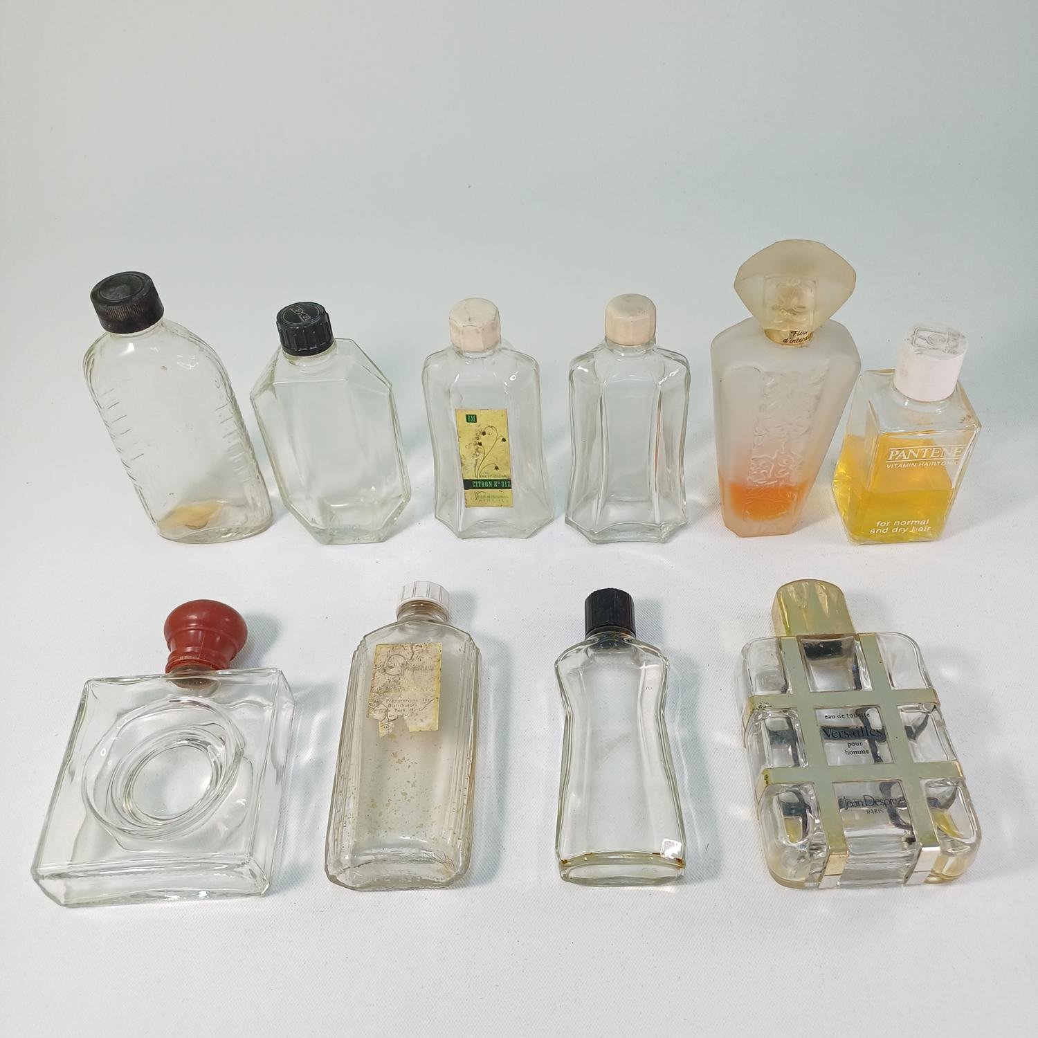 Vintage LOT 10 γυάλινων μικρών μπουκαλιών διαφόρων μεγεθών και σχεδίων. Το LOT αποτελείται κυρίως από παλαιά μπουκαλάκια κολόνιας. Κάποια από αυτά περιέχουν μικρή ποσότητα κολόνιας. Το μέγιστο ύψος είναι 15 cm και το ελάχιστο ύψος 10,5 cm.