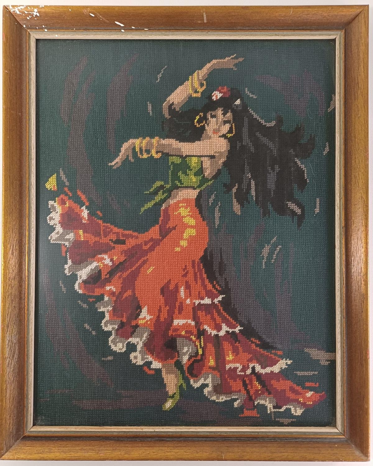 Vintage κάδρο με χειροποίητο κέντημα που απεικονίζει μια χορεύτρια Φλαμένκο