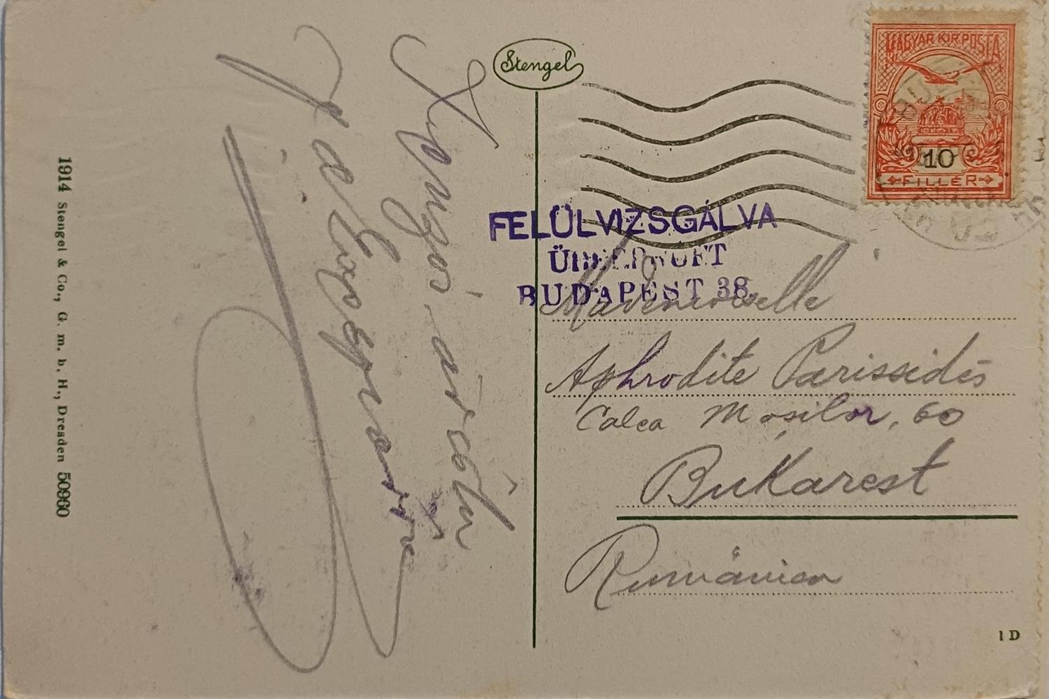 Η vintage καρτ ποστάλ απεικονίζει το κτίριο του Κοινοβουλίου της Ουγγαρίας (γνωστό και ως Országház) στη Βουδαπέστη μαζί αναγράφεται προσωπική σημείωση και δύο σφραγίδες. (μπροστινή όψη)