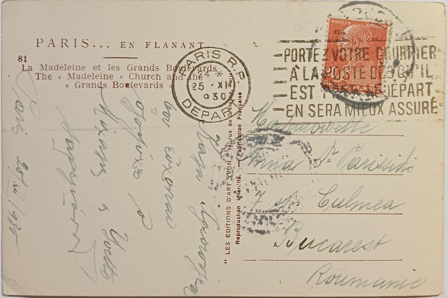 Vintage Καρτ Ποστάλ ” La Madeleine” (1930)