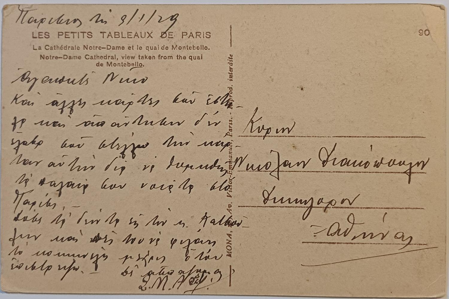 Αναγράφεται προσωπική σημείωση με ημερομηνία 9-1-1929. (πίσω όψη)
