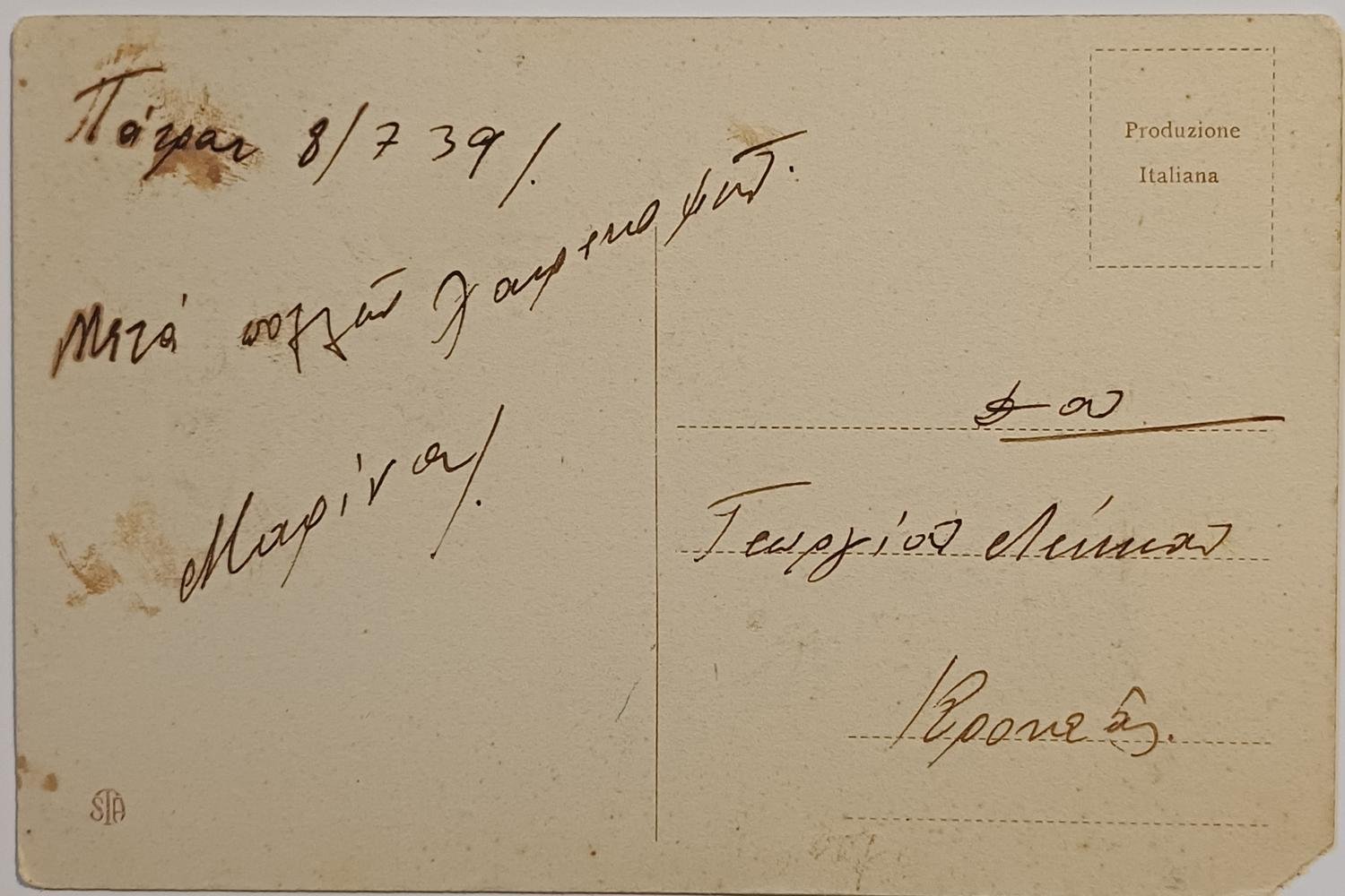 Αναγράφεται προσωπική σημείωση (χρονολογία 1939). (πίσω όψη)