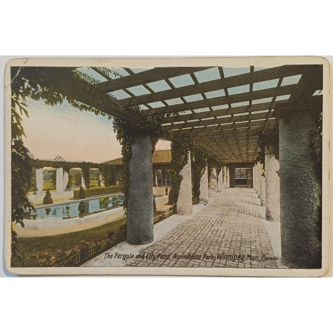 Vintage καρτ ποστάλ “The Pergola and Lily Pond”, Assiniboine Park, Winnipeg, Man., Canada (μέσα 20ού αιώνα)