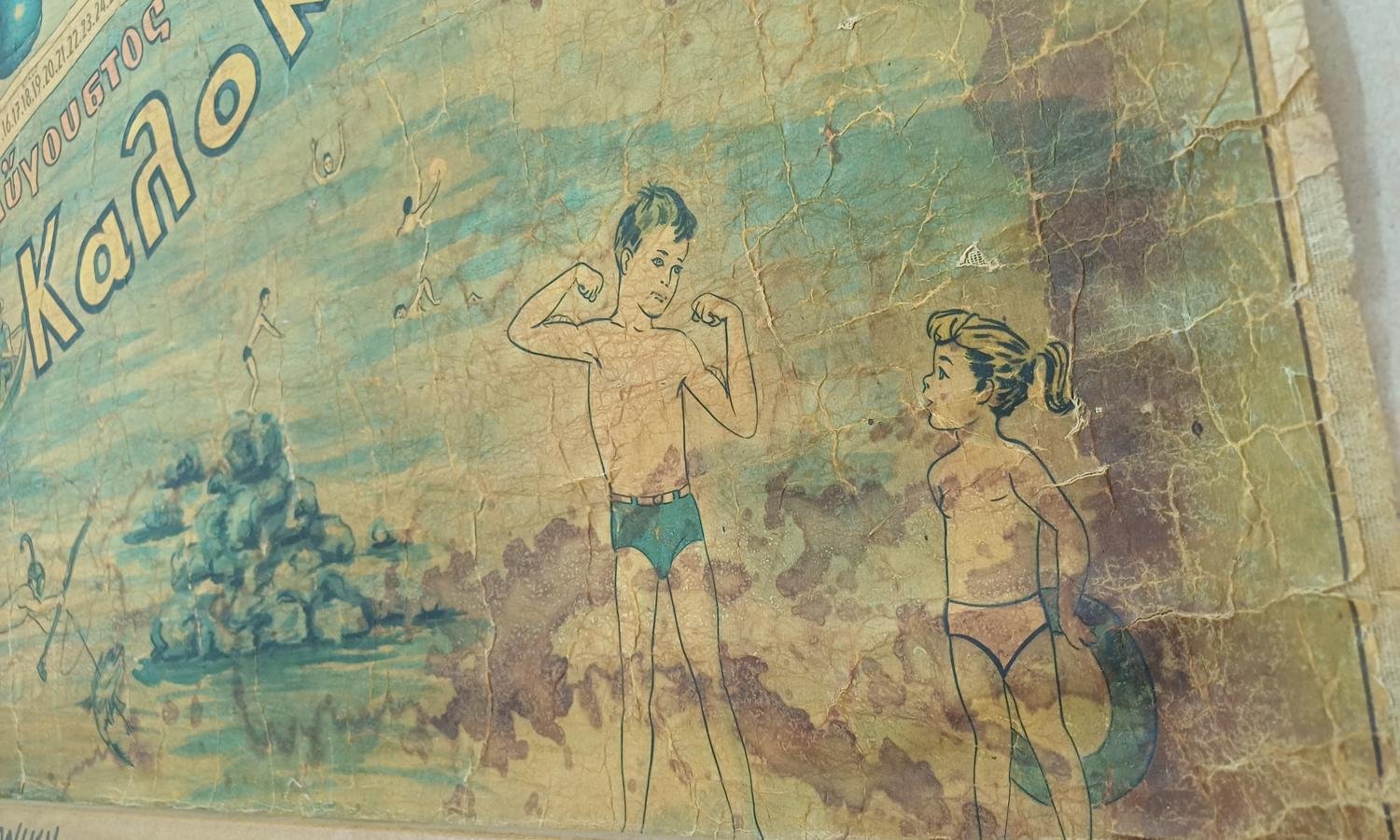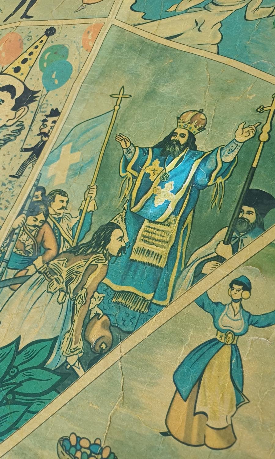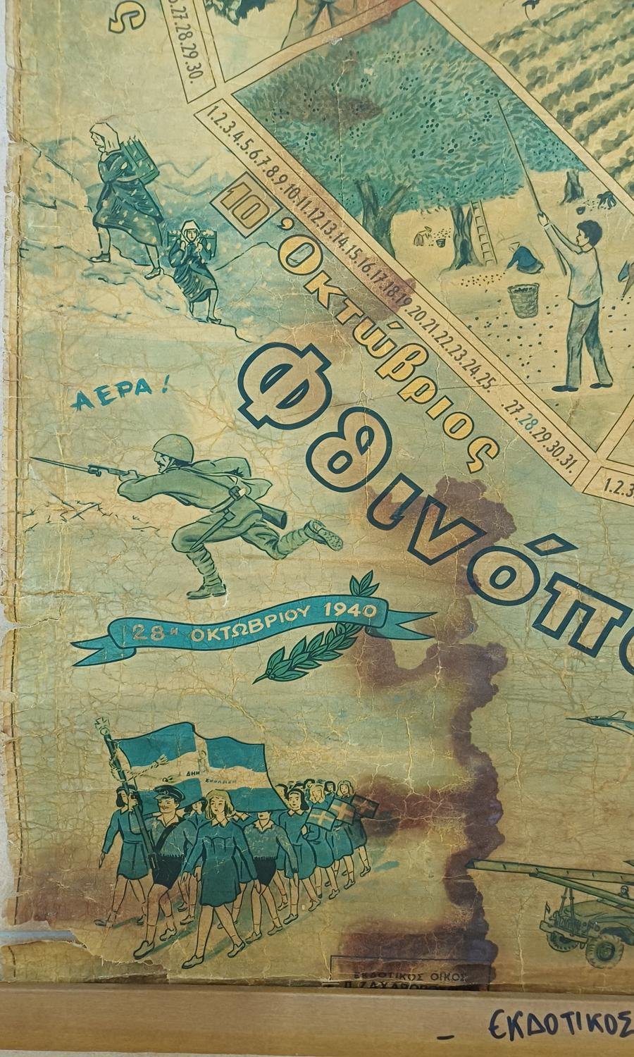 Λιθόγραφος σχολικός χάρτης από χαρτί φοδραρισμένο σε καμβά, με τα αρχικά του ξύλα ο οποίος απεικονίζει τους μήνες του χρόνου και τις 4 εποχές