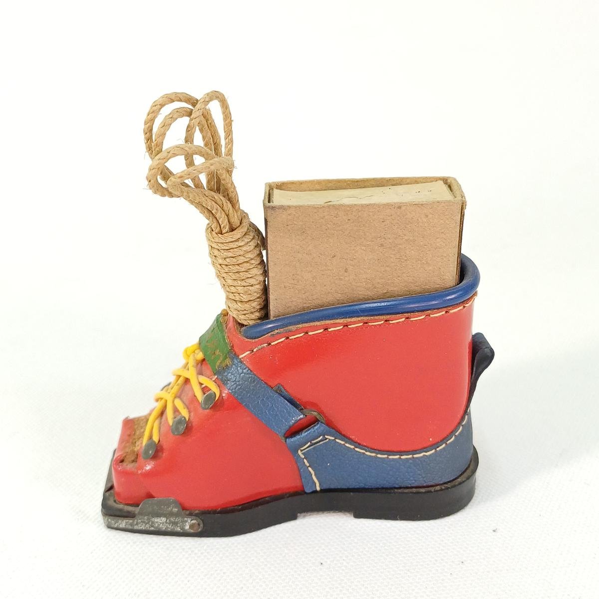 Vintage souvenir Αυστρίας σε σχήμα μπότας με κουτί σπίρτων, σχοινί ορειβασίας και παραδοσιακό καπελάκι